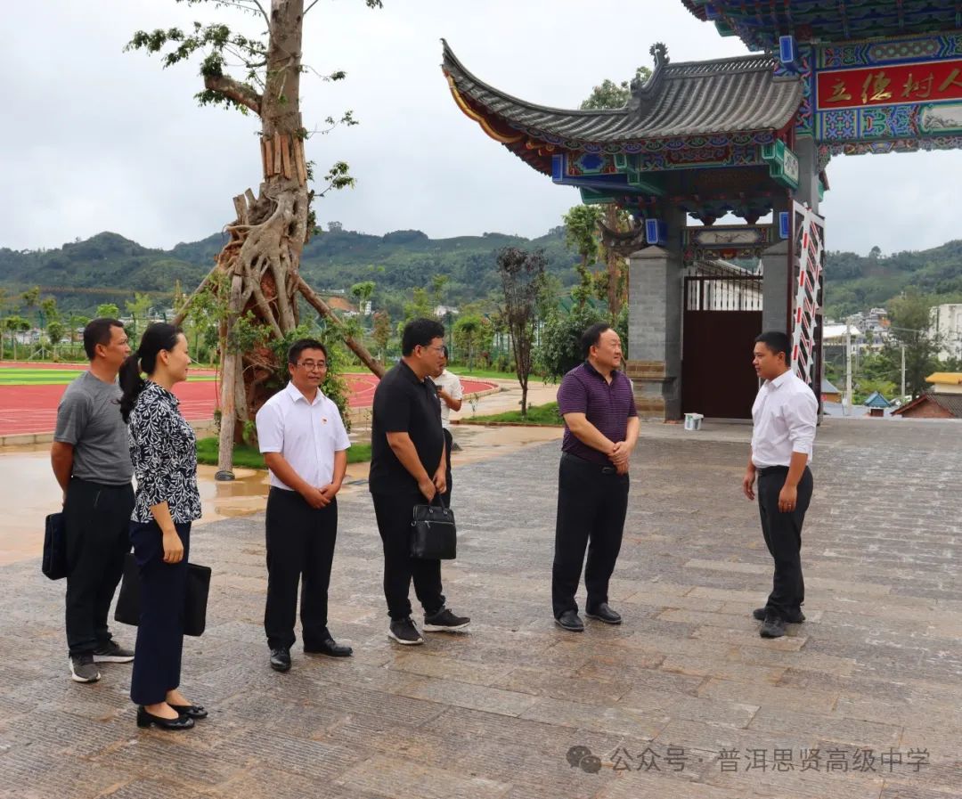 2024年7月3日下午普洱市委常委、思茅区委胡选坤书记、思茅区叶园副区长、思茅区教体局张继龙局长、倚象镇魏鹤书记等领导在普洱思贤高级中学李涛校长的陪同下考察调研我校的校建工作。